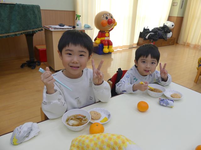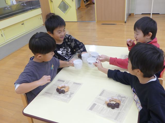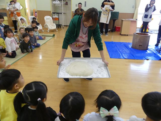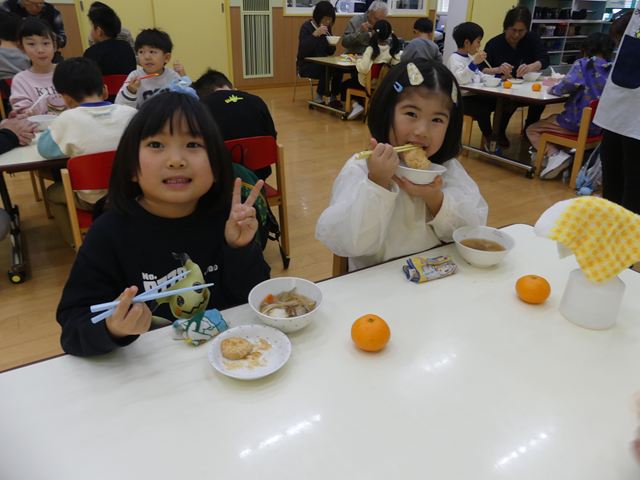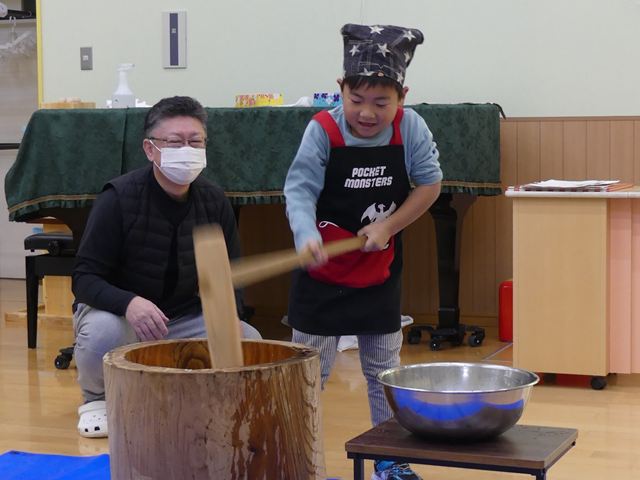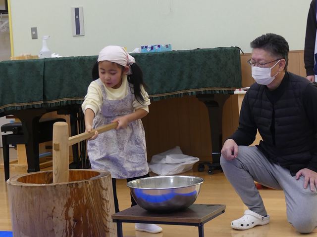 つきたてのお餅は、きな粉餅とお雑煮にしていただきました。ふかふか、もちもちのお餅はとっても美味しかったです。また、応援に来てくださった、祖父母のみなさま、ありがとうございました。